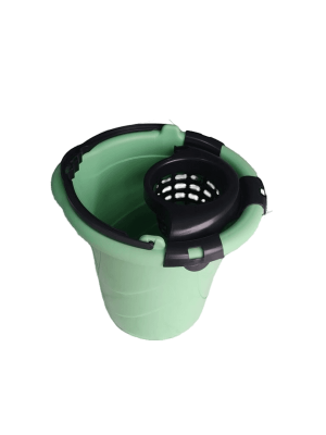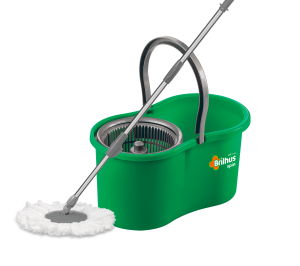 O Noviça Mop Giratório vem acompanhado de um balde centrifuga para torção dos cordões do mop e assim como outros modelos de mops Noviça, ele dispensa o contato das mãos com a água e químicos.