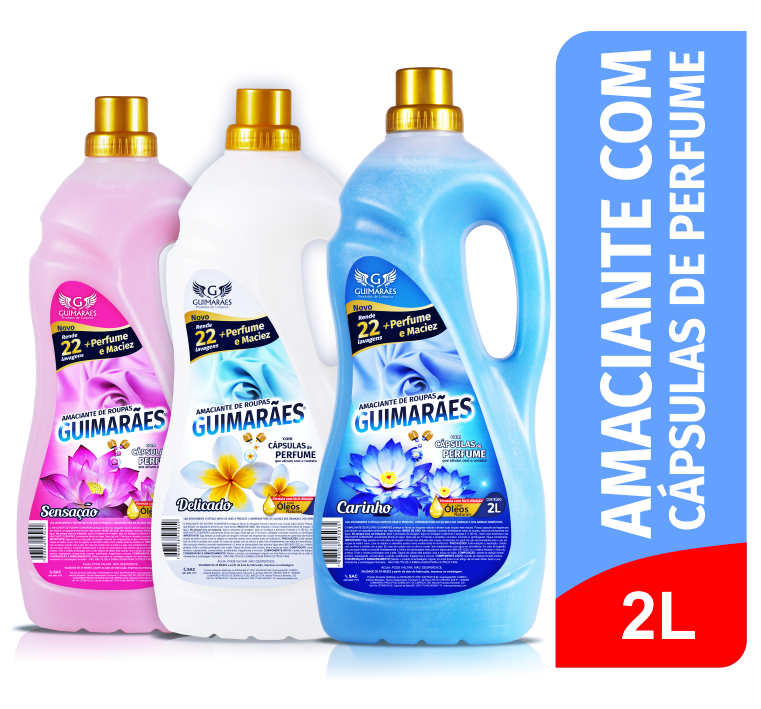 O AMACIANTE DE ROUPAS GUIMARÃES protege as fibras do desgaste natural e deixam suas roupas mais macias. Possui cápsulas de fragrâncias que deixam um agradável perfume por mais tempo.