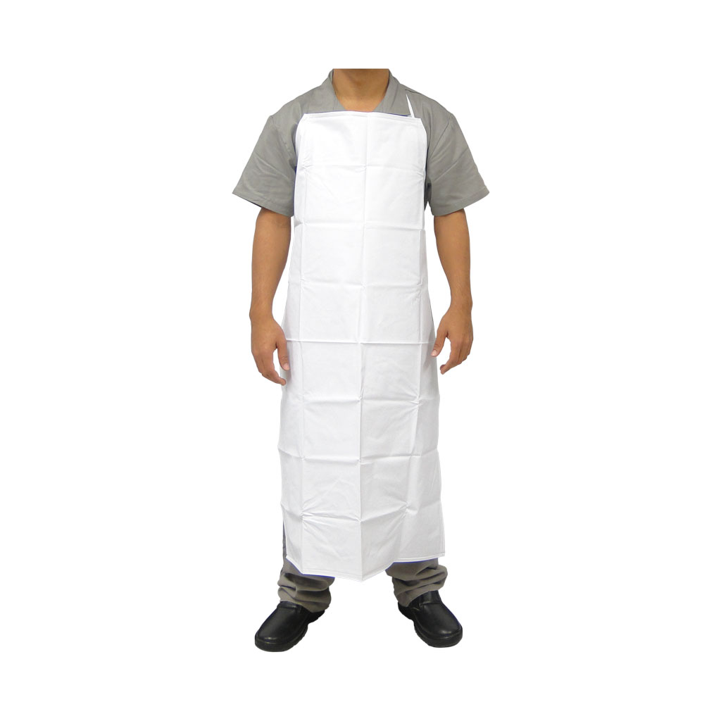 Avental de segurança confeccionado em PVC com forro de poliéster. Tiras soldadas eletronicamente, sendo uma no pescoço e duas na cintura com fivela plástica para fechamento, acabamento nas laterais por solda eletrônica. Avental impermeável.