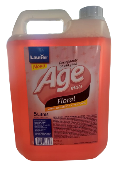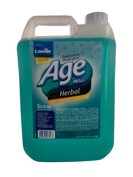 Age Mais Desinfetante Herbal e Floral da Launer Química possui propriedades antissépticas. Limpa e perfuma com alto desempenho. Indicado para limpeza e desinfecção de superfícies, pisos, vasos sanitários e ralos.