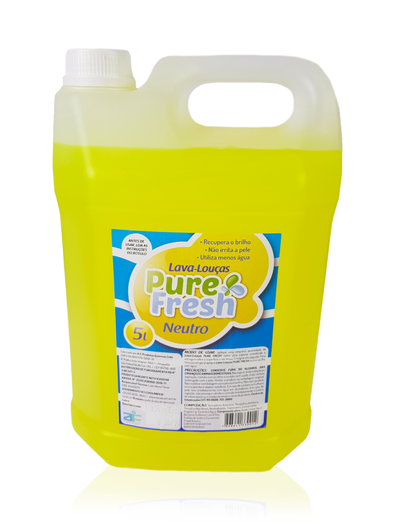 Detergente lava louças da Pure Fresh, faz a limpeza completa de forma prática e ainda recupera o brilho dos utensílios, sem irritar a pele ou desperdiçar produto ou água.