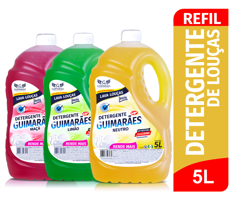 Para uma limpeza em geral, aplique o DETERGENTE GUIMARÃES dissolvido em água.
