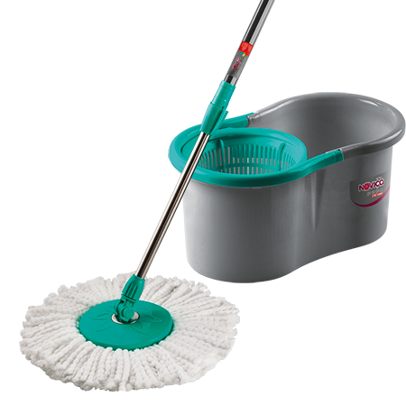 O Noviça Mop Giratório vem acompanhado de um balde centrifuga para torção dos cordões do mop e assim como outros modelos de mops Noviça, ele dispensa o contato das mãos com a água e químicos.